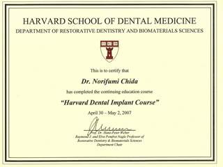 - ハーバード大学(アメリカ)歯学部デンタルインプラントコース 修了